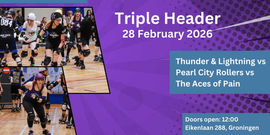Kom kijken & officiaten bij onze Triple Header: Thunder & Lightning vs Breda Roller Derby vs Parliament of Pain